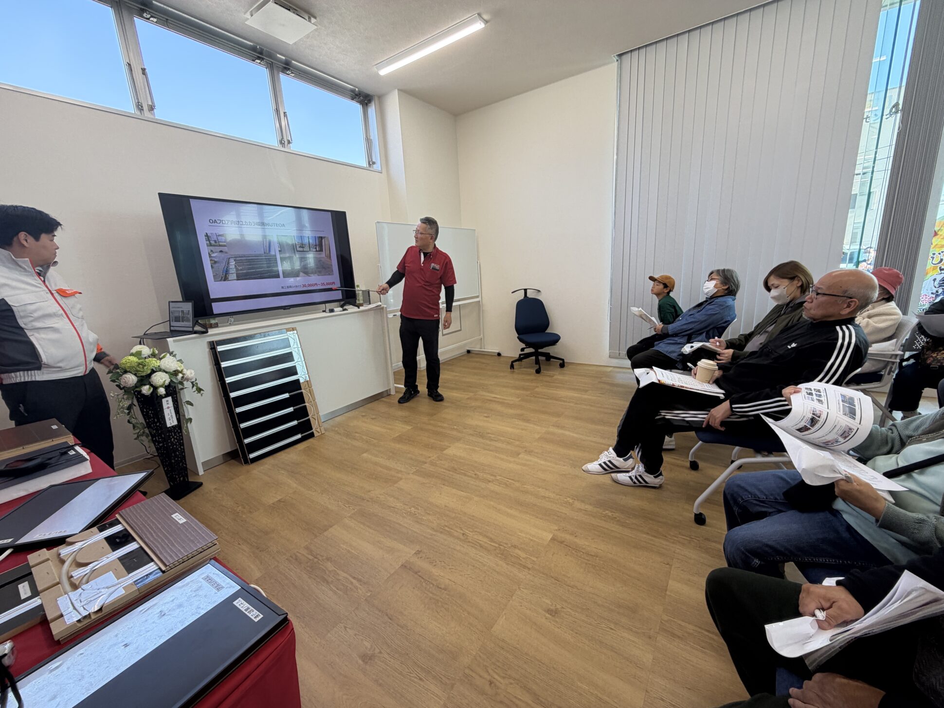 当日は午前・午後の2回FHSユカカラ暖房(温水式床暖房)セミナーが開催され、合計100名のお客様に聴講いただき、4~5件のお客様には早速見積り依頼をいただきました。